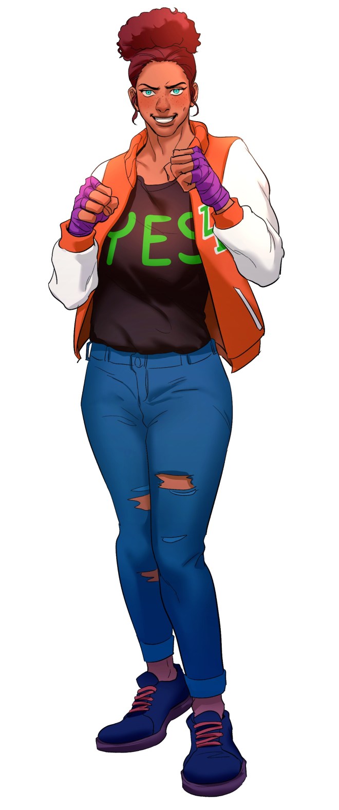 - confident and proud; has nicknamed her fists “Songbirds”